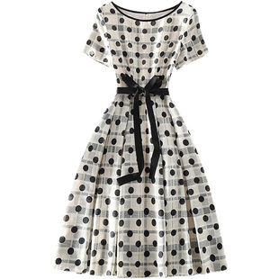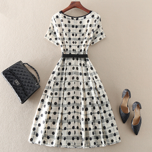 收腰显瘦中长款 气质优雅高端女装 波点印花大摆连衣裙 新款 清仓夏装