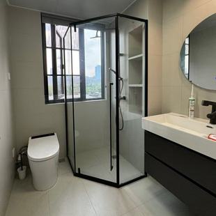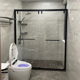 杭州淋浴房定制网红极简移门一字型卫生间开门不锈钢隔断干湿分离