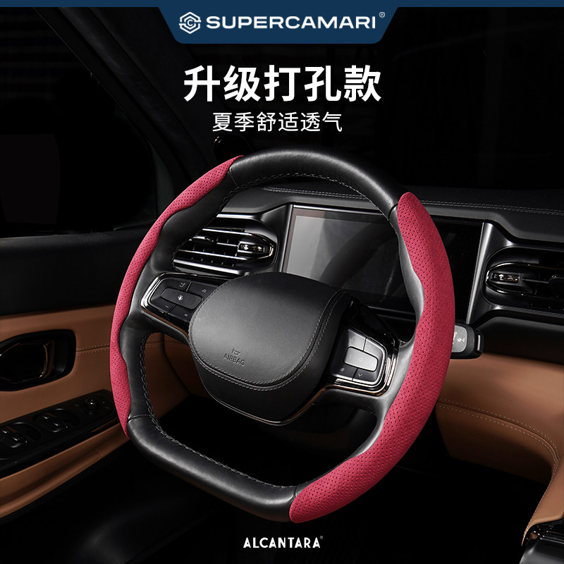 通用 Alcantara汽车方向盘套翻毛皮吸汗防滑超薄车把套四季