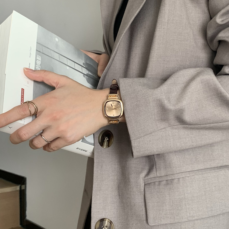 法国轻奢小众设计手表女ins风简约气质小方糖学生vintage复古女表