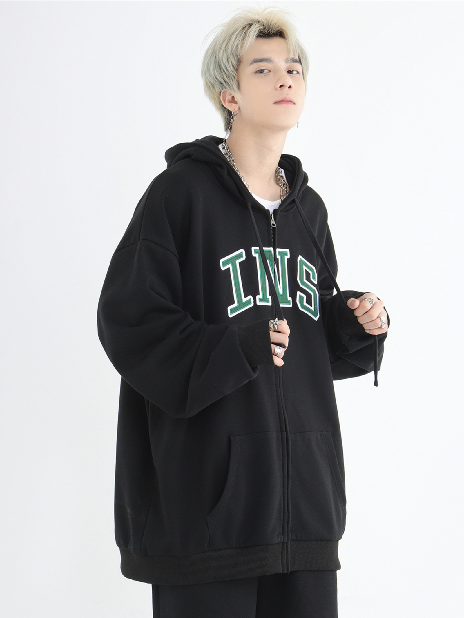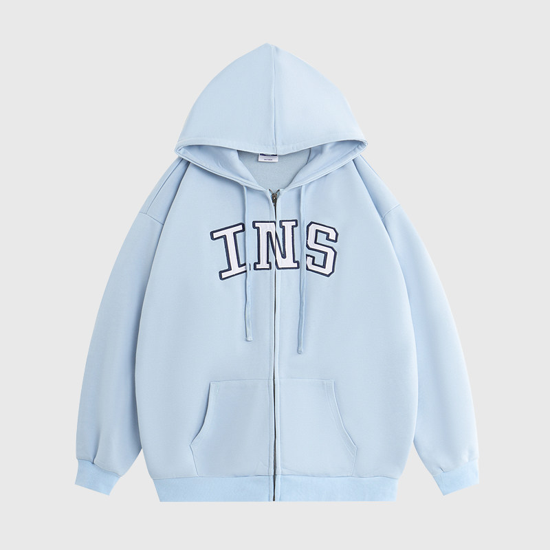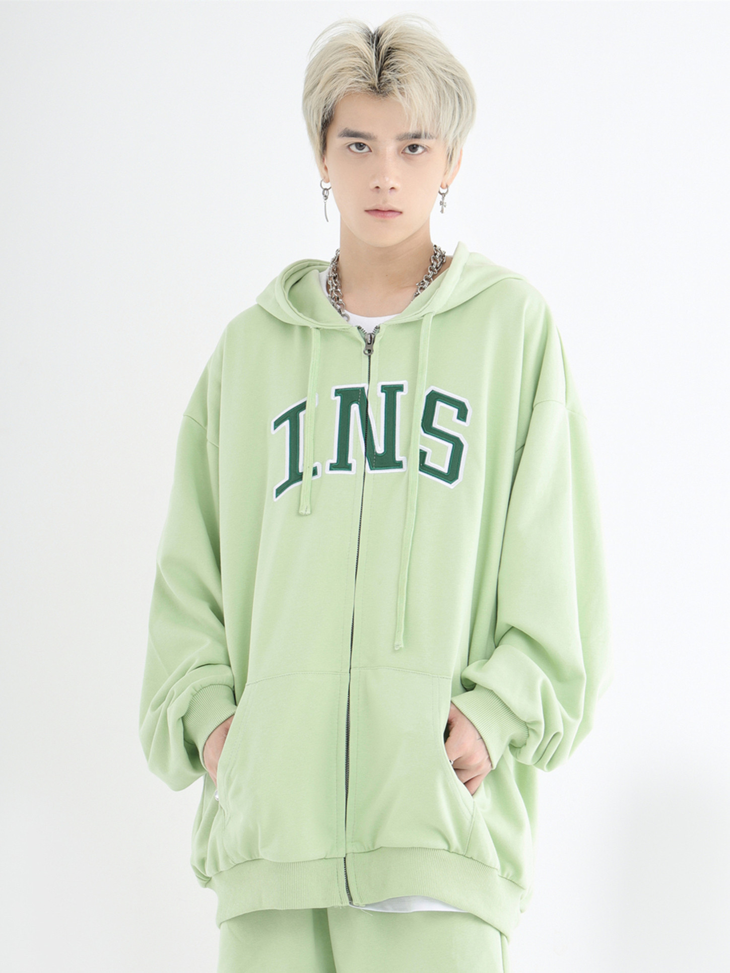 INSstudios 自制国潮情侣圈织软卫衣拉链外套 雪糕系四色LOGO开衫