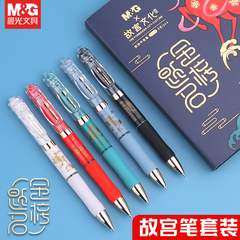 晨光文具故宫文化联名按动中性笔0.5mm黑色签字笔金榜题名中国风水笔K35学生考试专用黑笔G 5替芯开学礼物