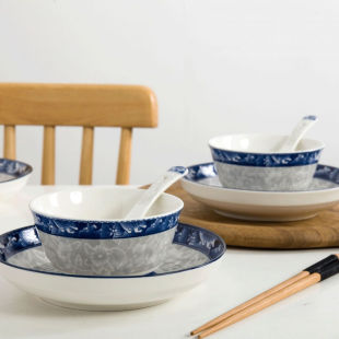 家用78件青花瓷碗鱼碟子组合餐具 餐具碗碟套装 2022升级款 奢华风格
