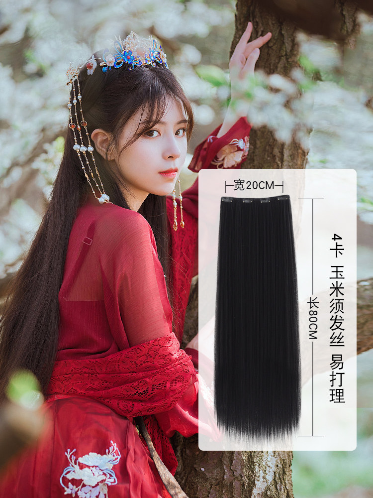 汉服假发片古风假发一片式 玉米须曲曲发排长直发 接发盘发发髻古装