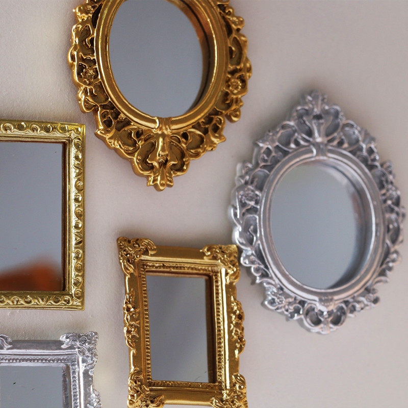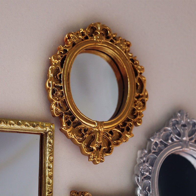 Dollhouse娃娃屋迷你古典镜子金银 圆形雕花配件微缩生活场景模型