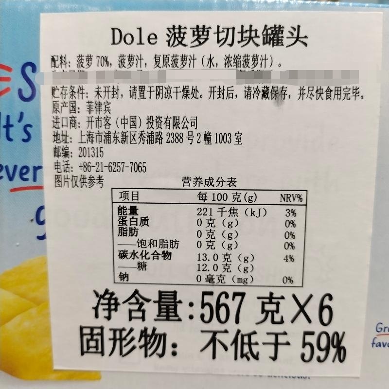 Costco开市客代购 6开盖即食 菲律宾进口都乐切块菠萝水果罐头567g