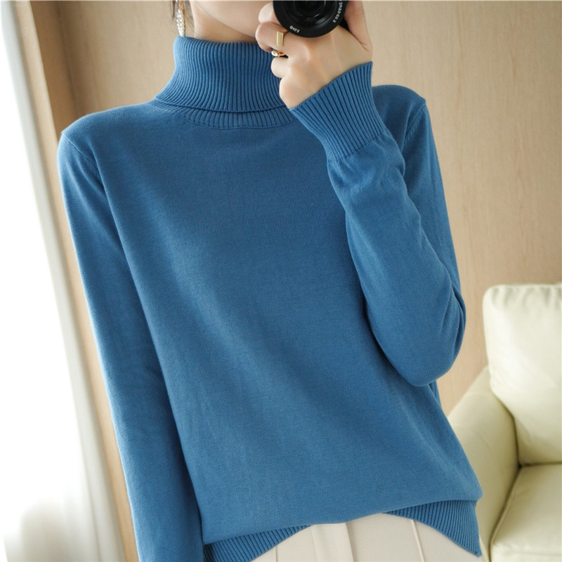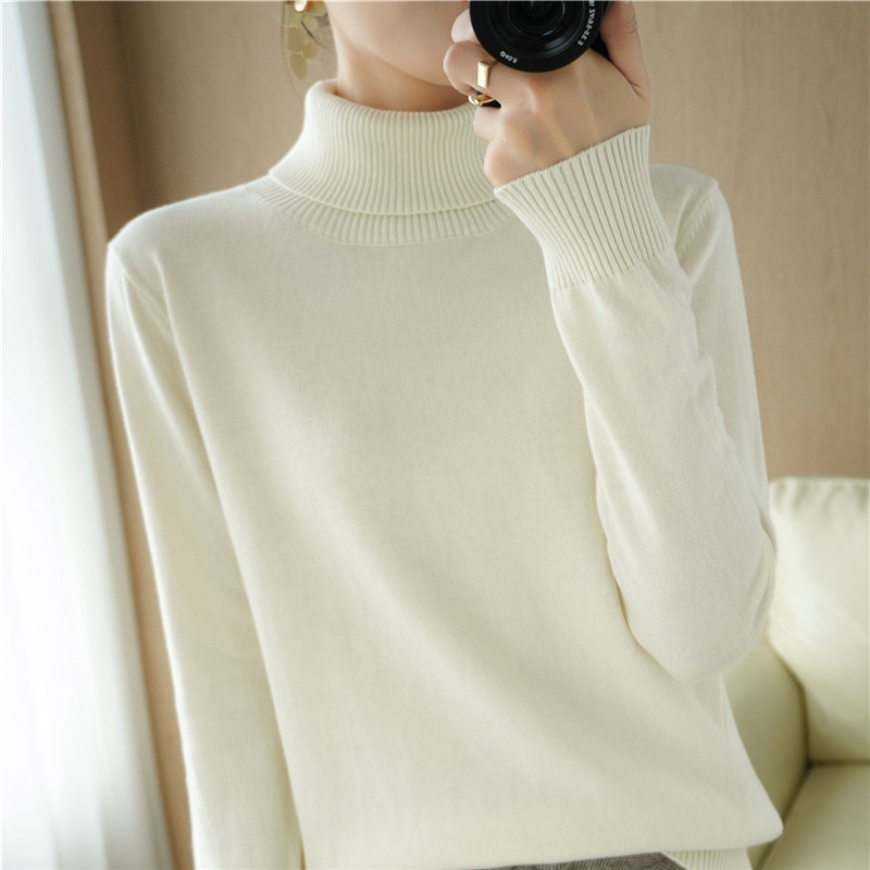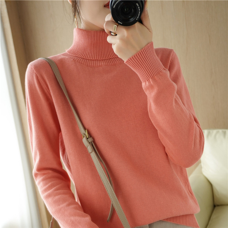 秋冬纯色堆堆领羊绒针织衫 毛衣打底衫 女高领修身 一线成衣山羊绒衫