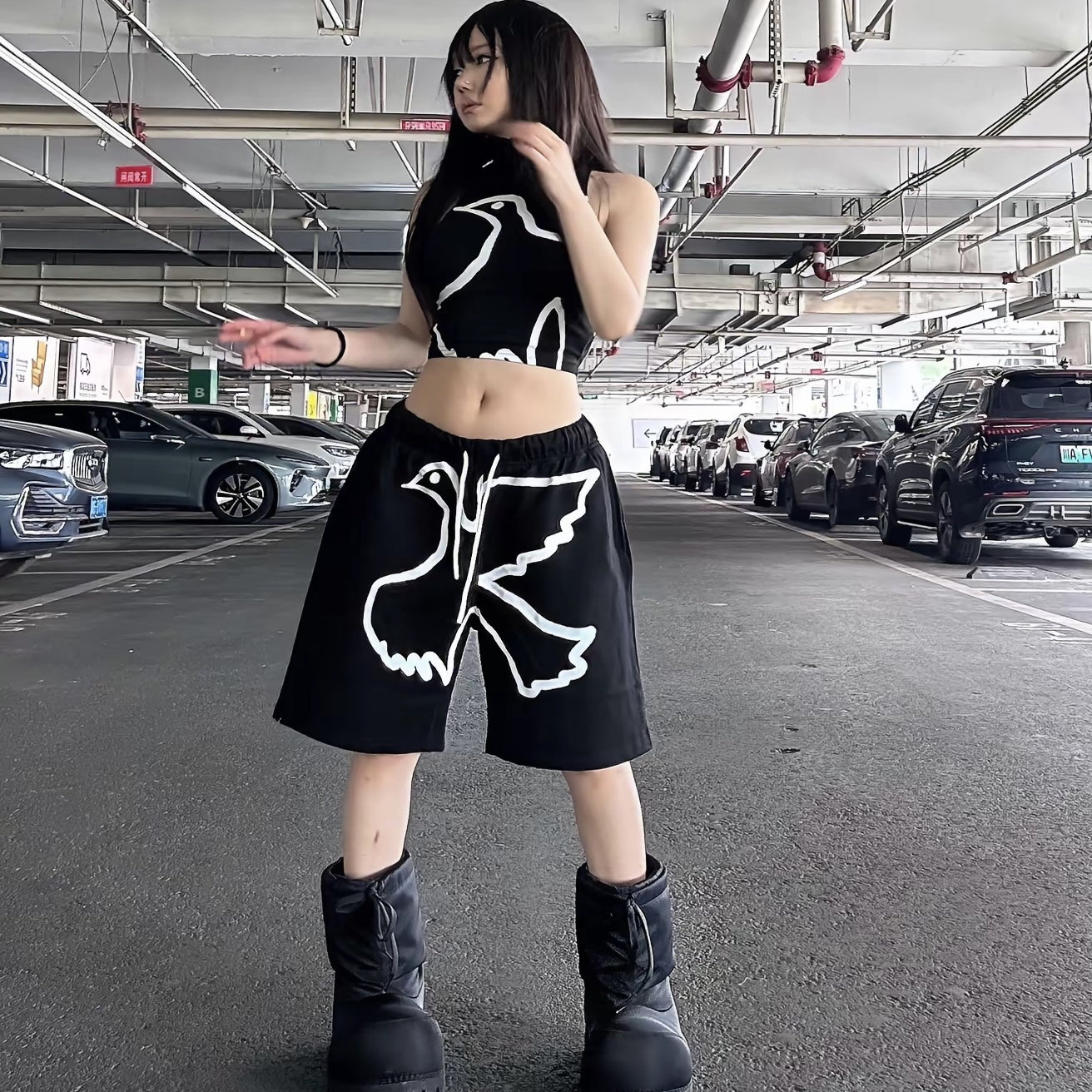 云梯 休闲潮流街头五分裤 和平鸽纯棉短裤 美式 百搭 小众个性 Vinkid