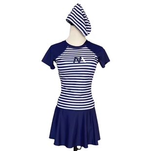 游泳装 泳衣女中年妈妈款 时尚 保守遮肚显瘦中老年大码 女士分体裙式
