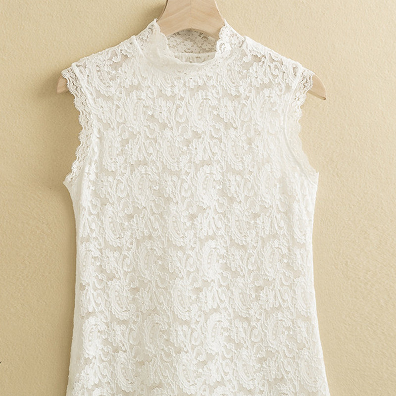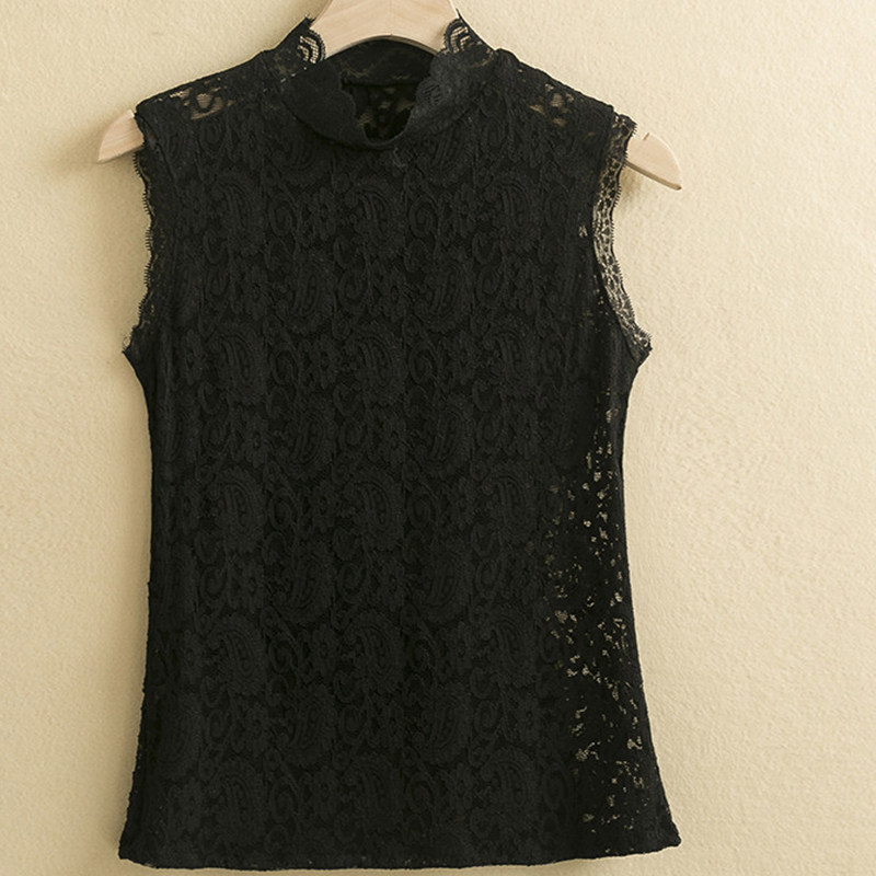 女上 无袖 2026春秋新款 套头立领镂空蕾丝花边背心女内搭吊带打底衫