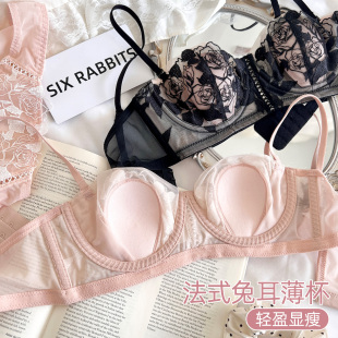六只兔子小怪瘦法式 文胸 内衣女性感蕾丝纯欲大胸显小调整型大码