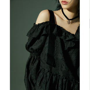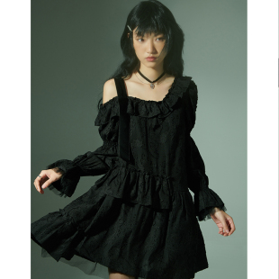 painter|暗黑提花领型不规则下摆设计师连衣裙 black L.NYX 22SS