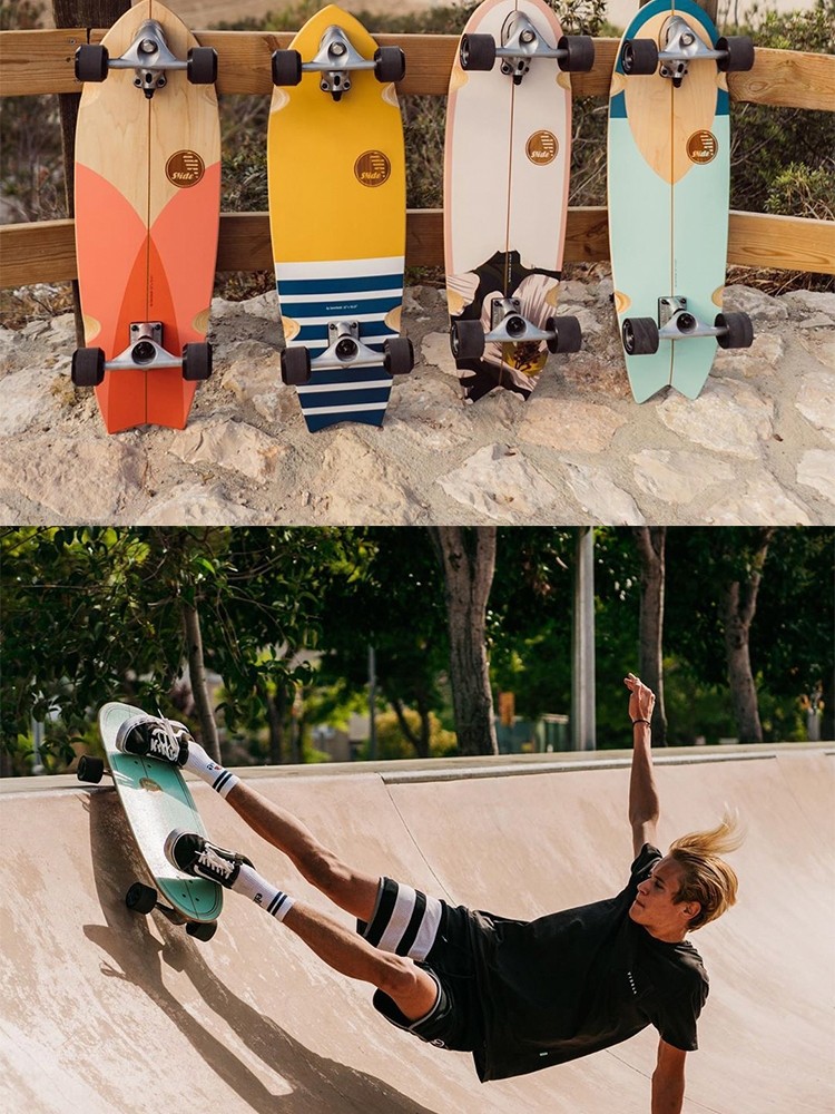 迈卡龙陆地冲浪板滑板专业陆冲初学者女生成人S7弹簧桥免蹬地路冲