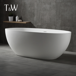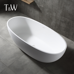 特拉维尔厚边人造石浴缸家用小户型独立式 PMMA薄边椭圆形双人浴盆