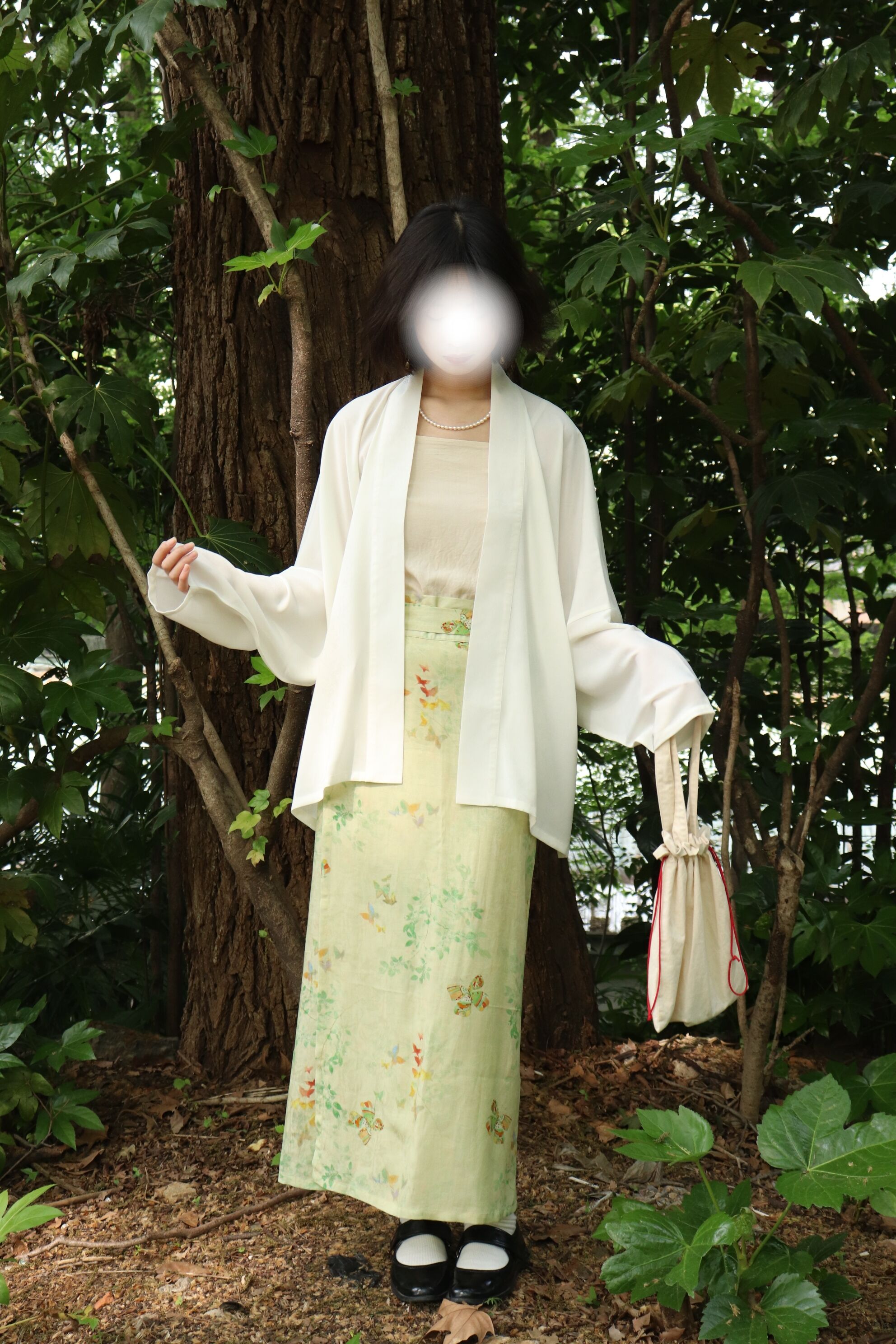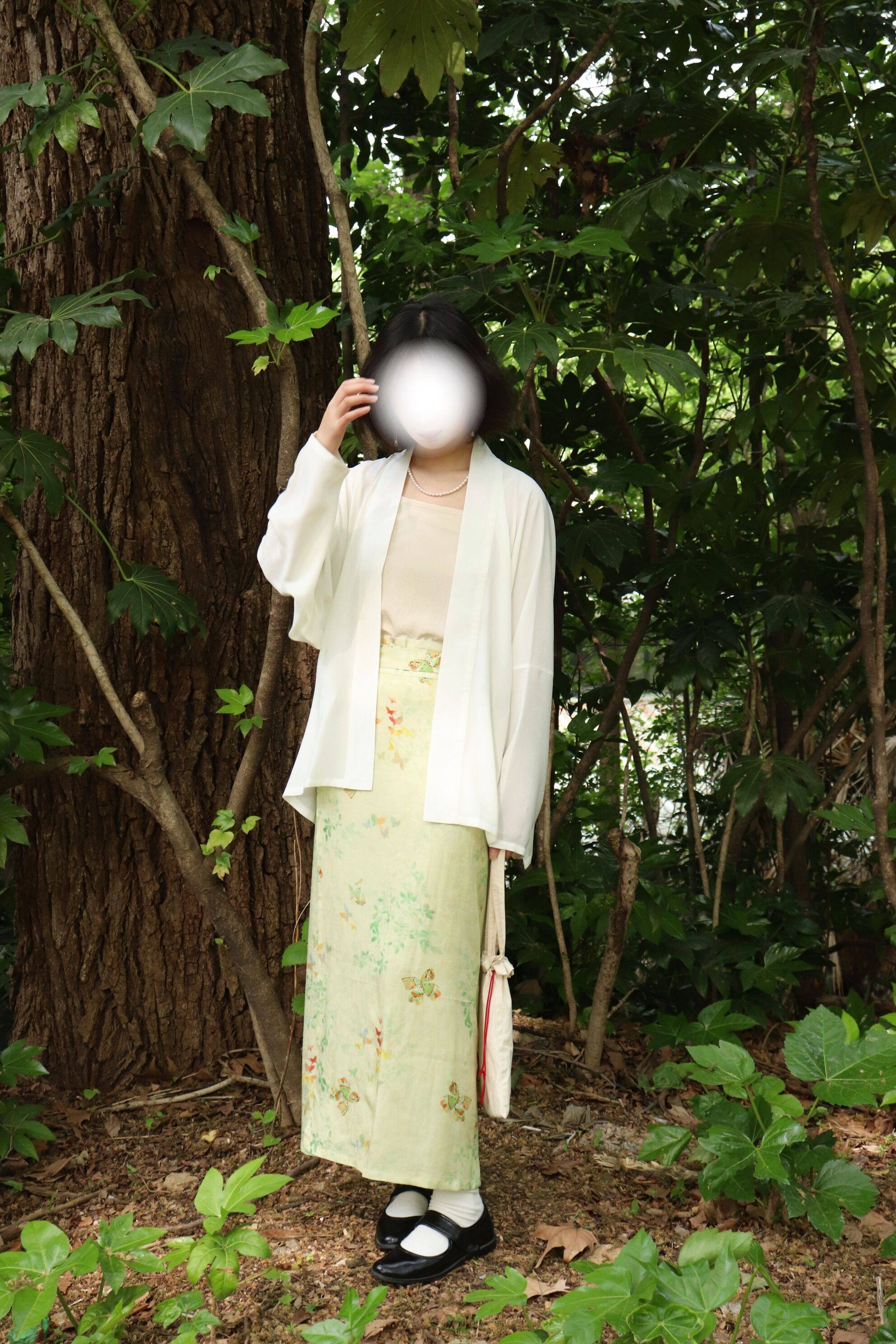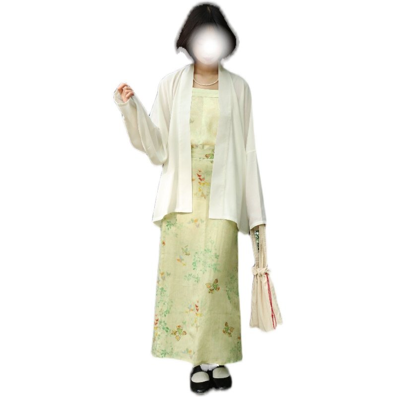 短衫 原创宋制直领对襟飞机袖 两片裙旋裙日常汉服 画蝶 裳裳者华