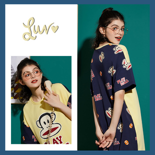 夏季 夏天可爱睡裙女款 薄款 家居服套装 情侣纯棉短袖 大嘴猴睡衣男士