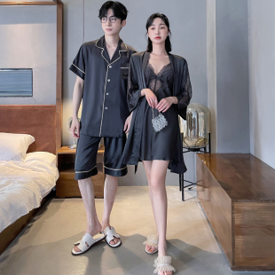 家居服套装 情侣睡衣女夏季 短袖 高级感男士 冰丝性感吊带睡裙袍法式