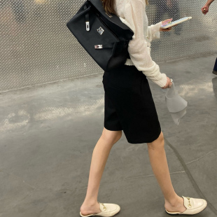 女春五分直筒裤 eewen挺括感中裤 短裤 高腰黑色显瘦西装 设计感 西裤