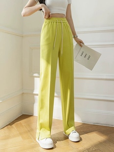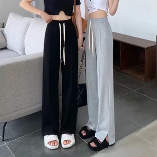 春秋洋气垂感宽松休闲运动裤 开叉长裤 秋装 西装 子 女裤 拖地裤 阔腿裤