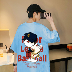 t恤男ins潮流卡通男生港风国潮宽松上衣服潮牌纯棉半袖 夏季 短袖