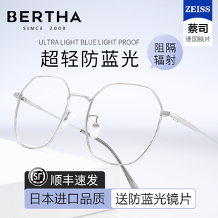 日本进口钛材防蓝光抗辐射近视眼镜女护眼无度数配平光眼睛男变色