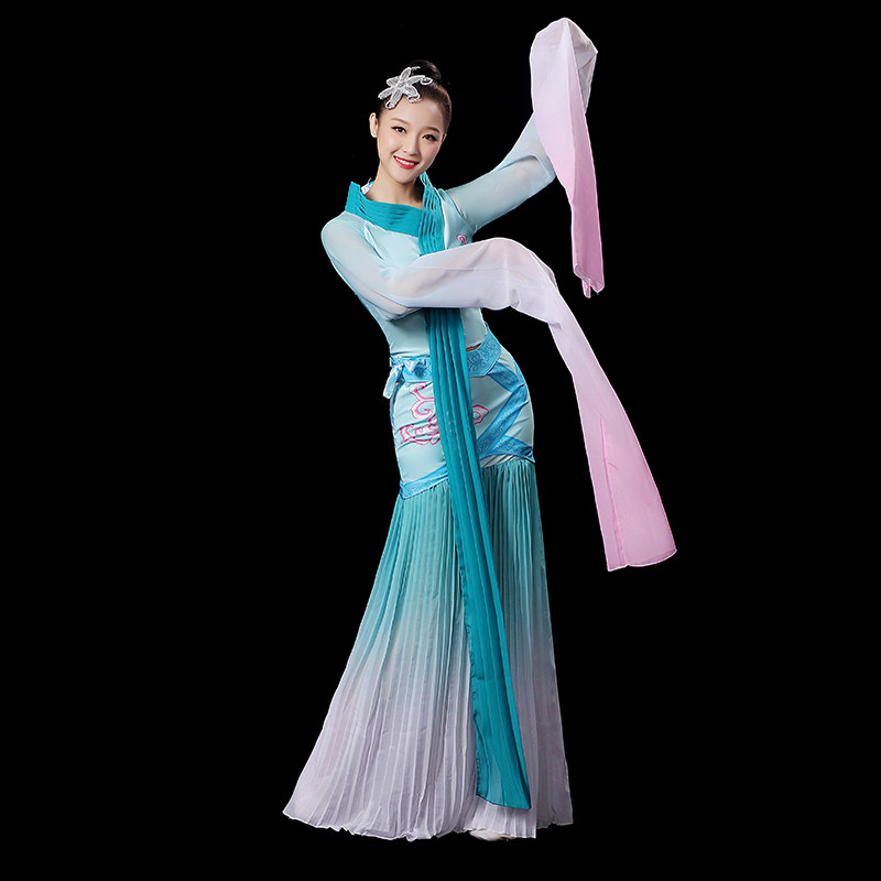 演出服女 采薇舞蹈服孔子舞惊鸿汉服飘逸甩袖 水袖 舞蹈服古典舞原版