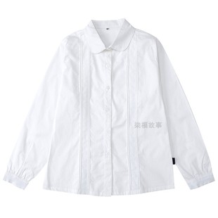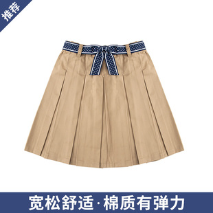 卡其色直筒校服裤 男女童英伦校服套装 白衬衫 中小学生纯白花边长袖