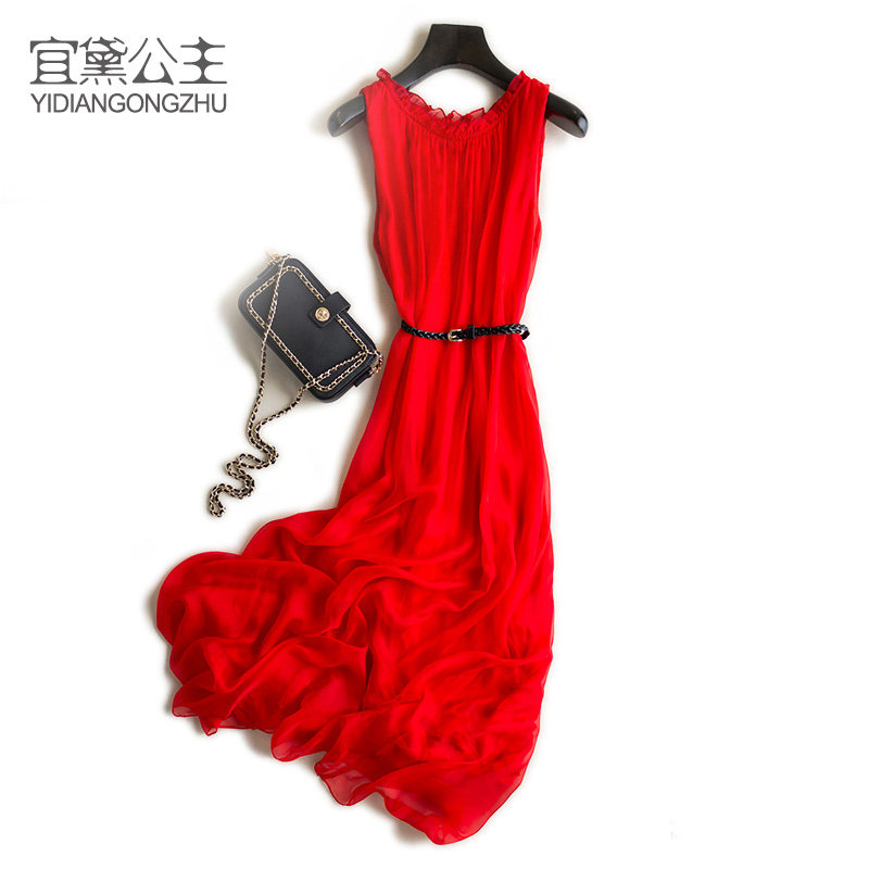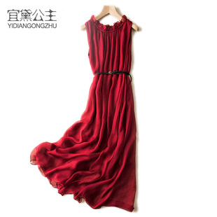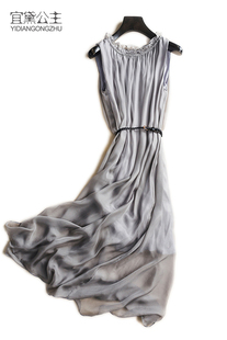无袖 新款 宽松显瘦裙子桑蚕丝气质长裙 2025夏季 真丝连衣裙女中长款