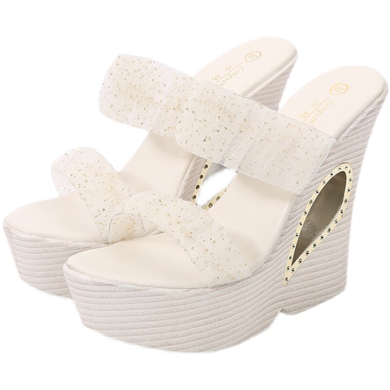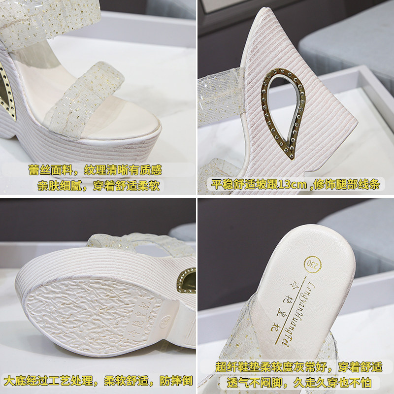 超高跟透明松糕凉鞋 时尚 厚底坡跟半拖鞋 女2026年新款 夏 外穿凉拖鞋