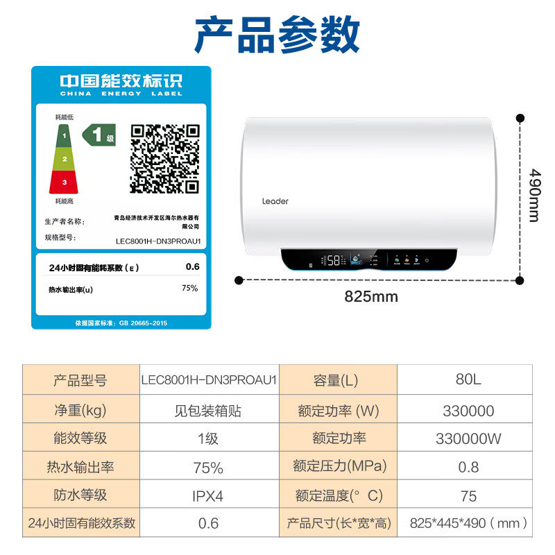 海尔出品统帅电热水器60升一级能效家用卫生间洗澡节能速热NQ3