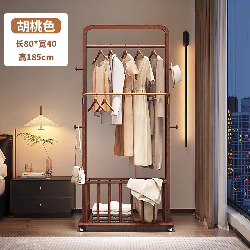 衣帽架落地挂衣架家用衣帽间全实木卧室房间简易收纳衣架置物架子