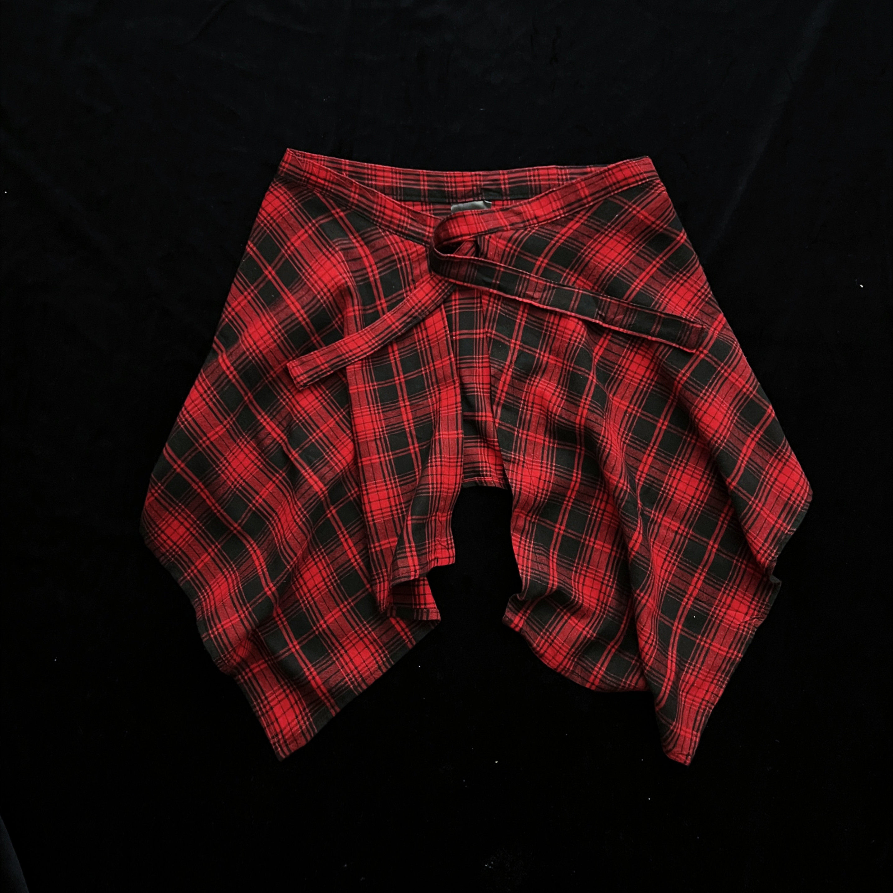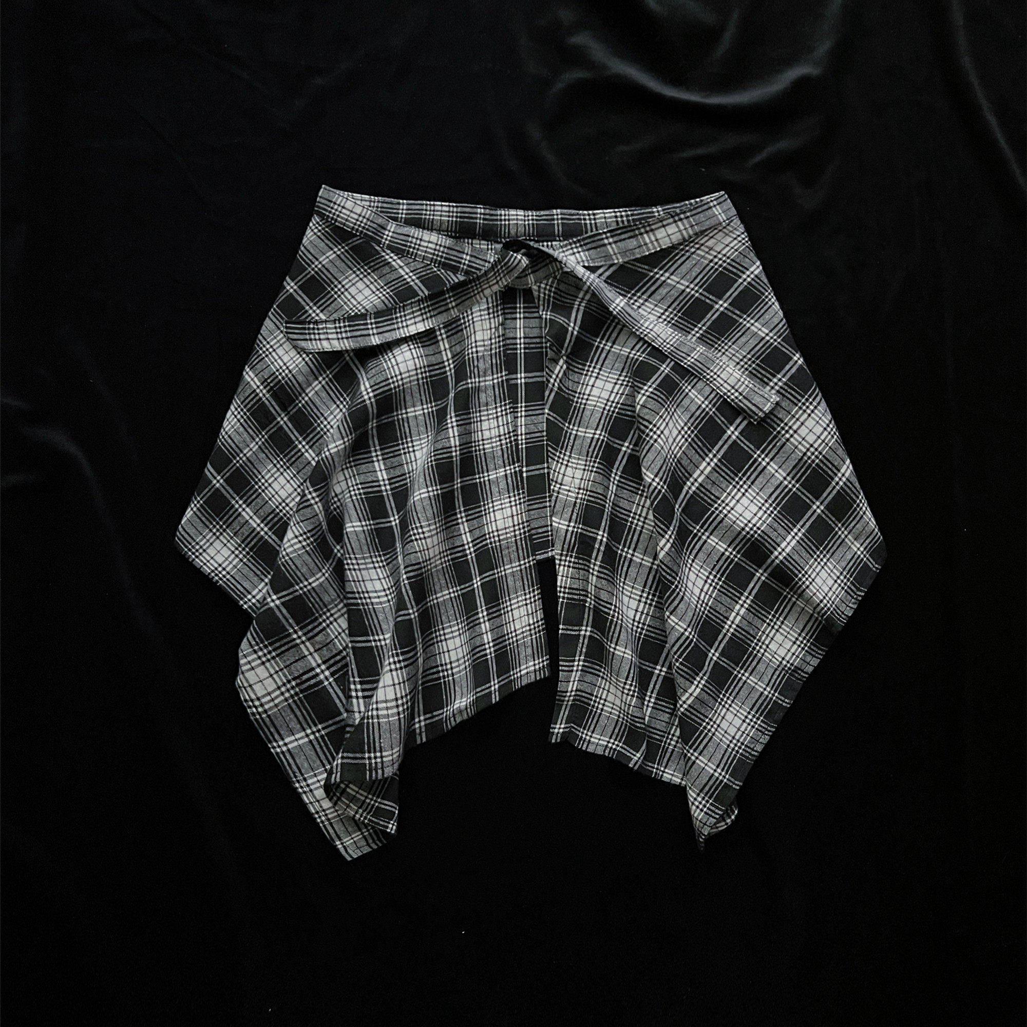 NASA格子叠穿神器屁帘女一片式 系带藏肉嘻哈街舞男生下摆腰封衬衫