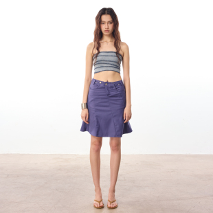 WILDERSHORE 25SS原创基础紫色结构休闲包臀裙通勤荷叶边裙半身裙