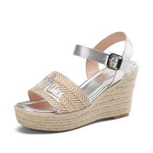 简约休闲凉鞋 妙丽圆头坡跟复古手工草编编织设计时尚 女 MILLIE