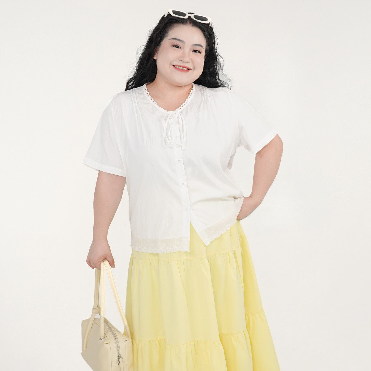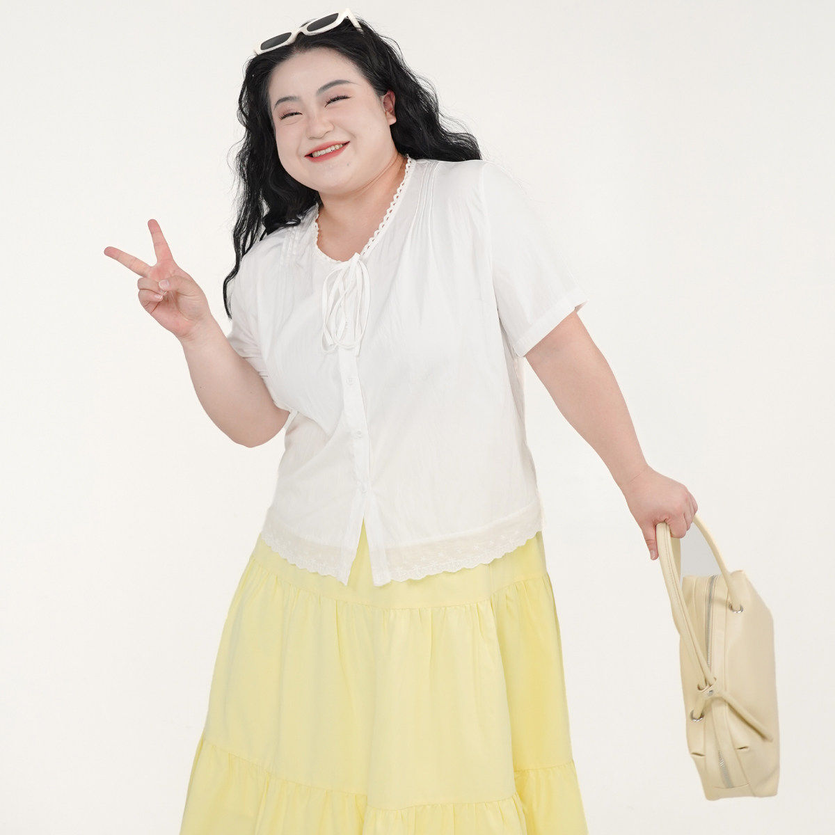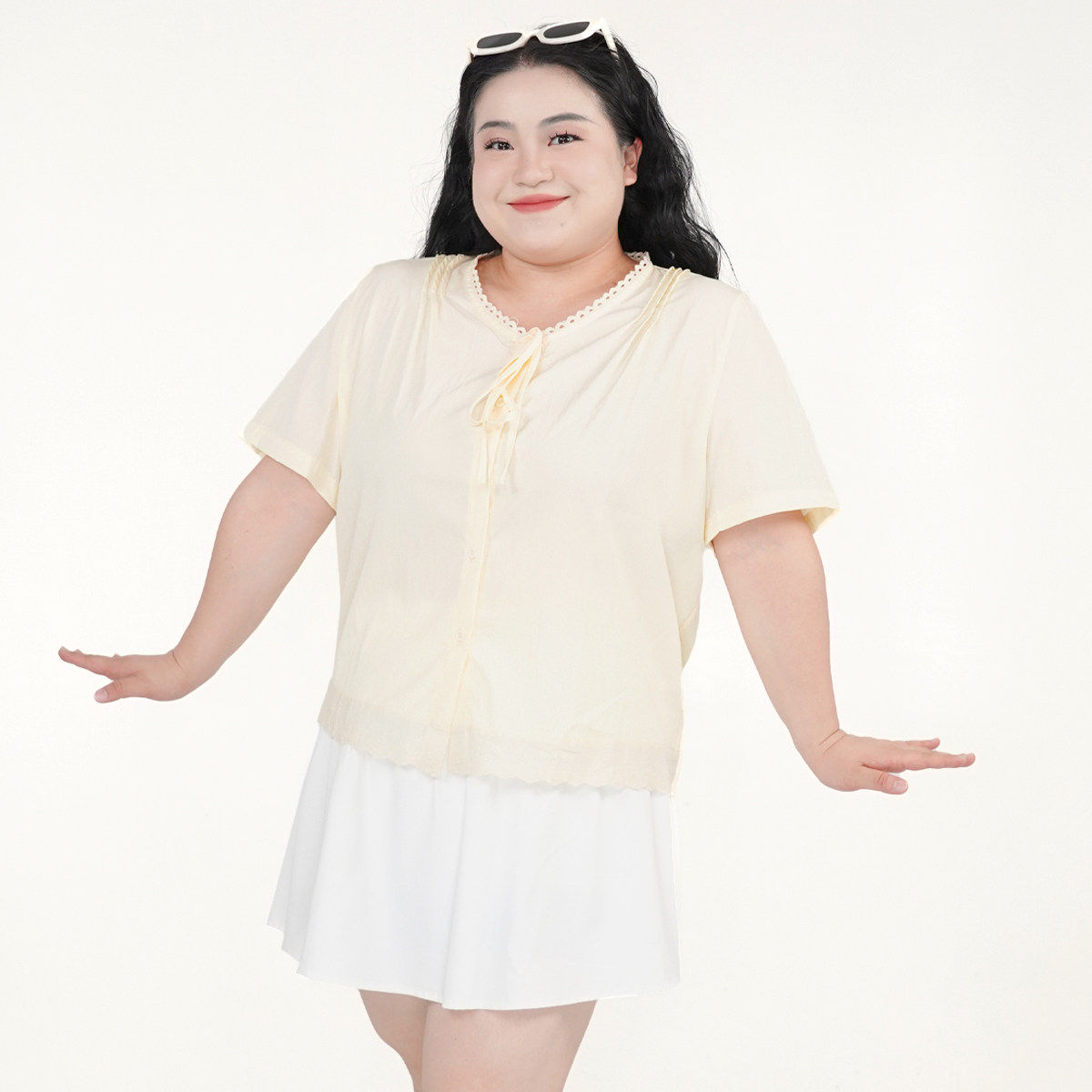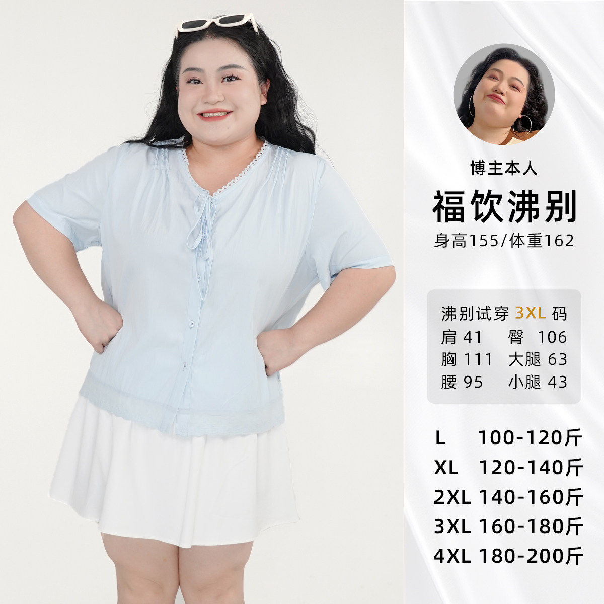 甜美系带花边短袖 福饮沸别 显瘦胖MM新款 大码 上衣2137 蓝梦花韵
