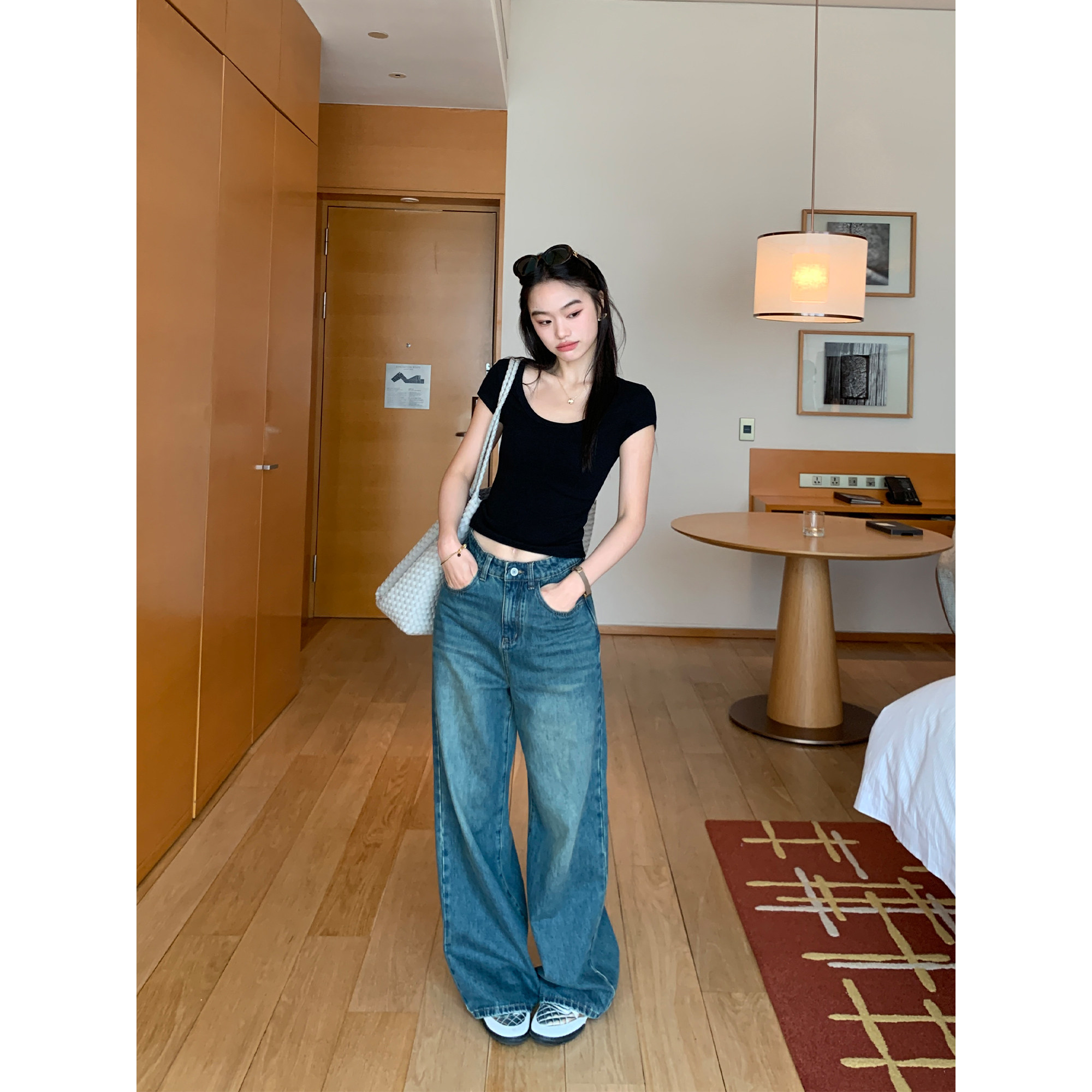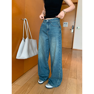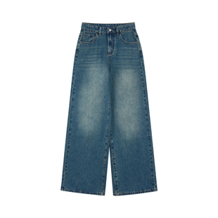 宽松直筒长裤 女高腰显瘦百搭休闲裤 怀旧复古阔腿牛仔裤 pusumede