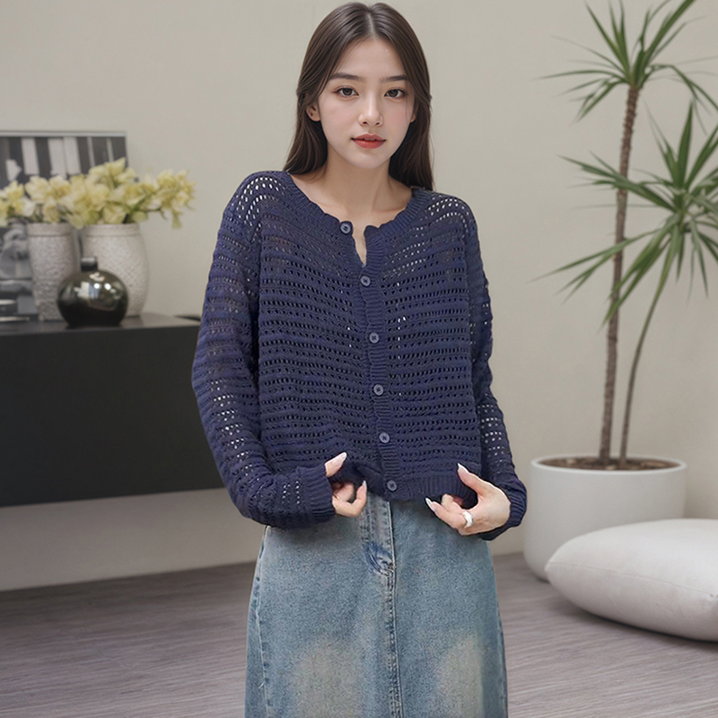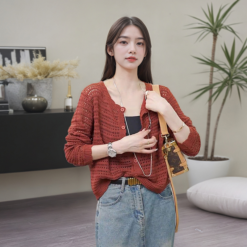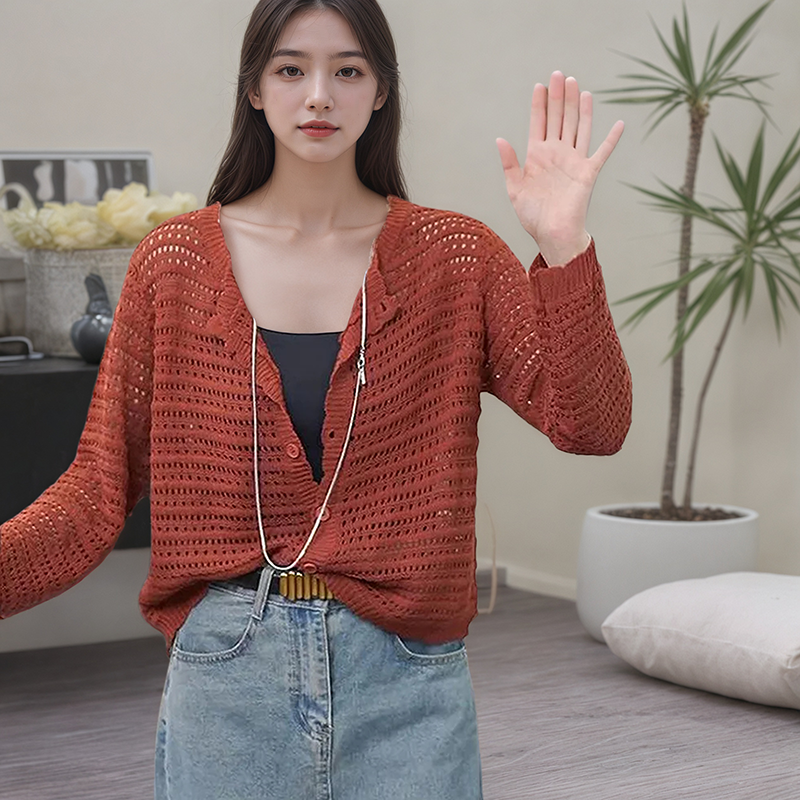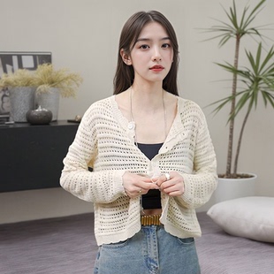 薄款 气质通勤镂空针织开衫 披肩外搭防晒空调衫 长袖 上衣 外套女新款