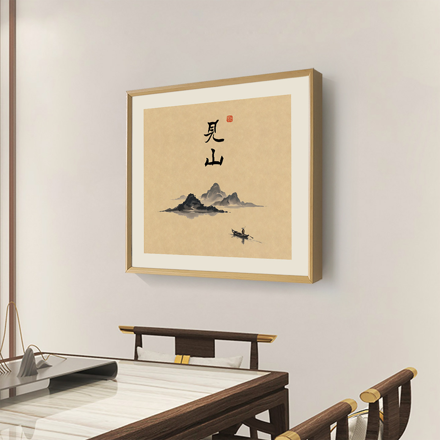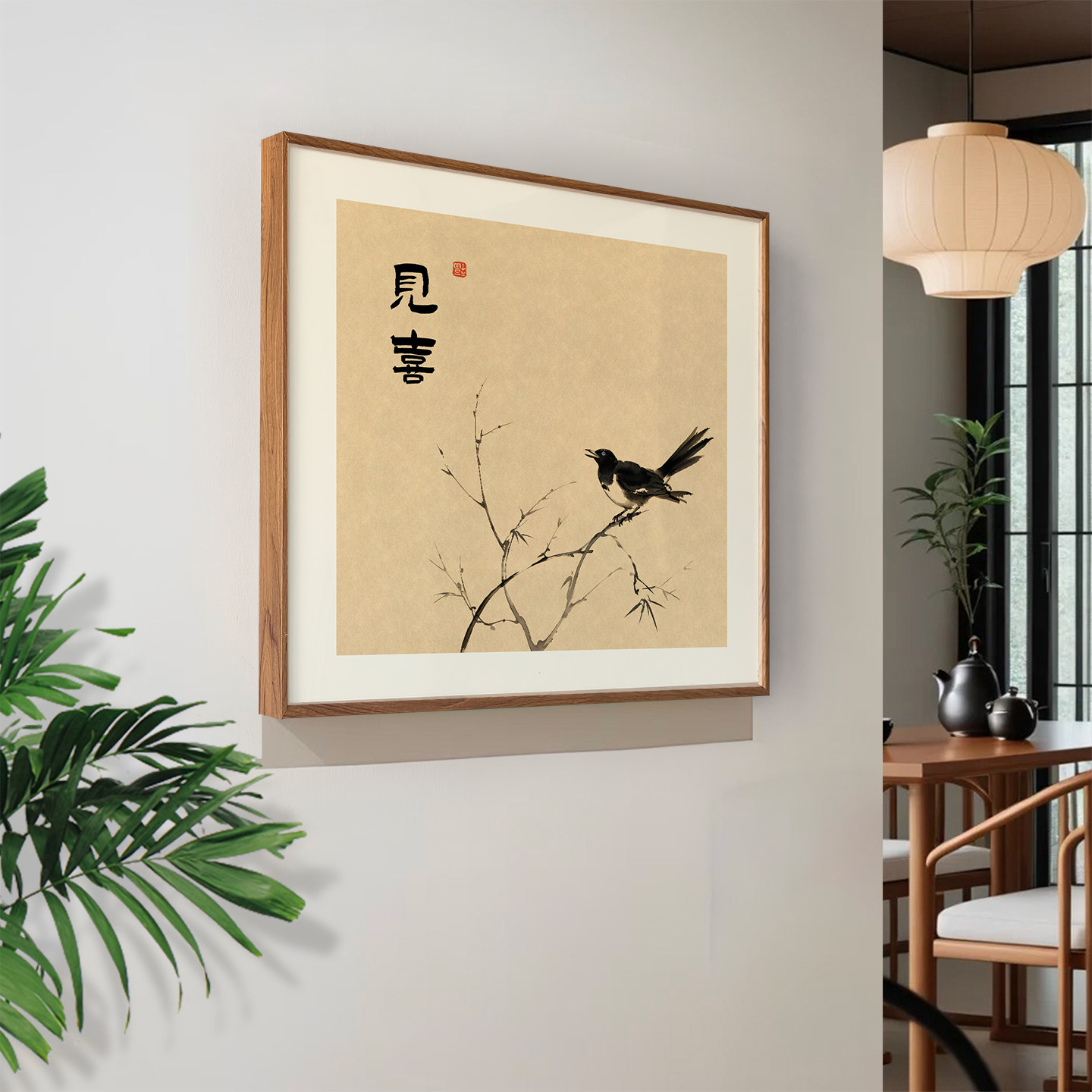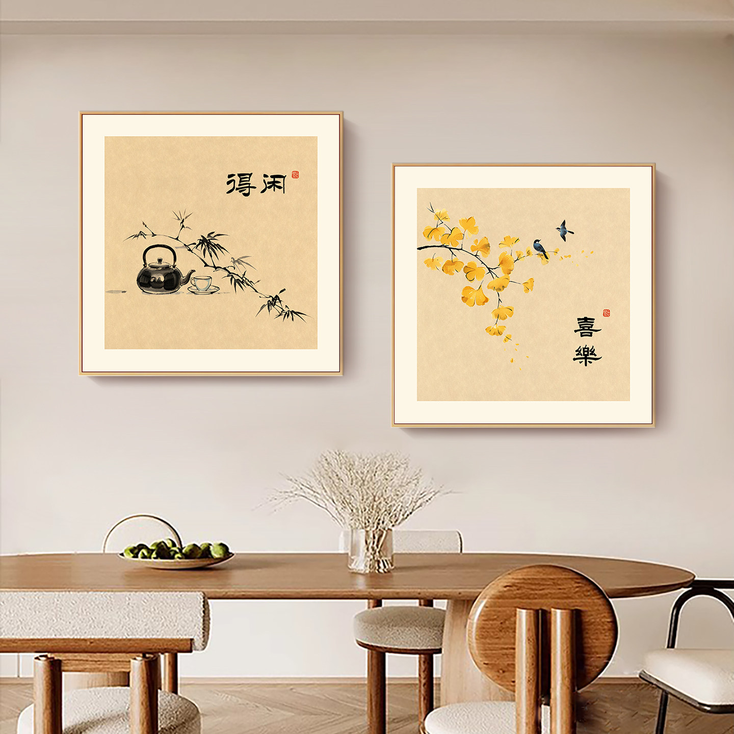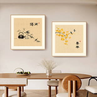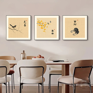 新中式 饰画饭厅原木风挂画茶室客厅厨房禅意书房壁画见喜 餐厅装