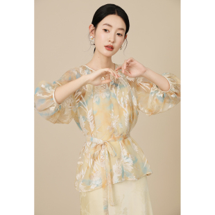 花弄影 烧花工艺晕染重工上衣套装 2025新款 罩衫 新中式 SHIBAI拾白