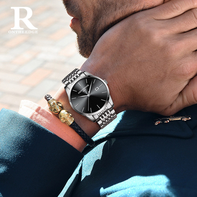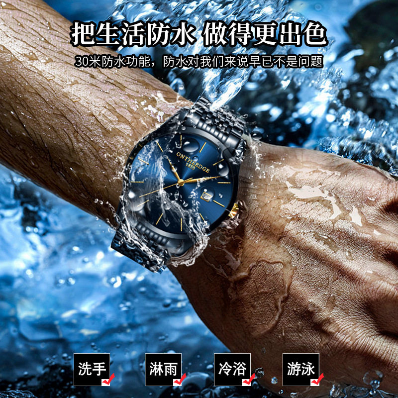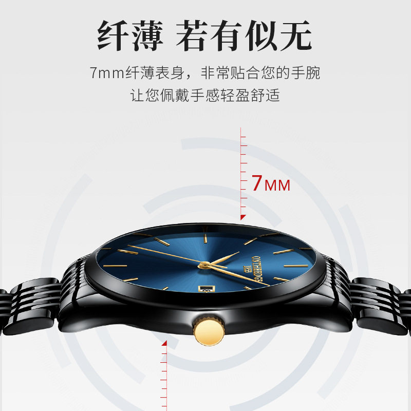 简约男表高档品牌手表男士 超薄日历钢带防水非机械学生石英腕表潮