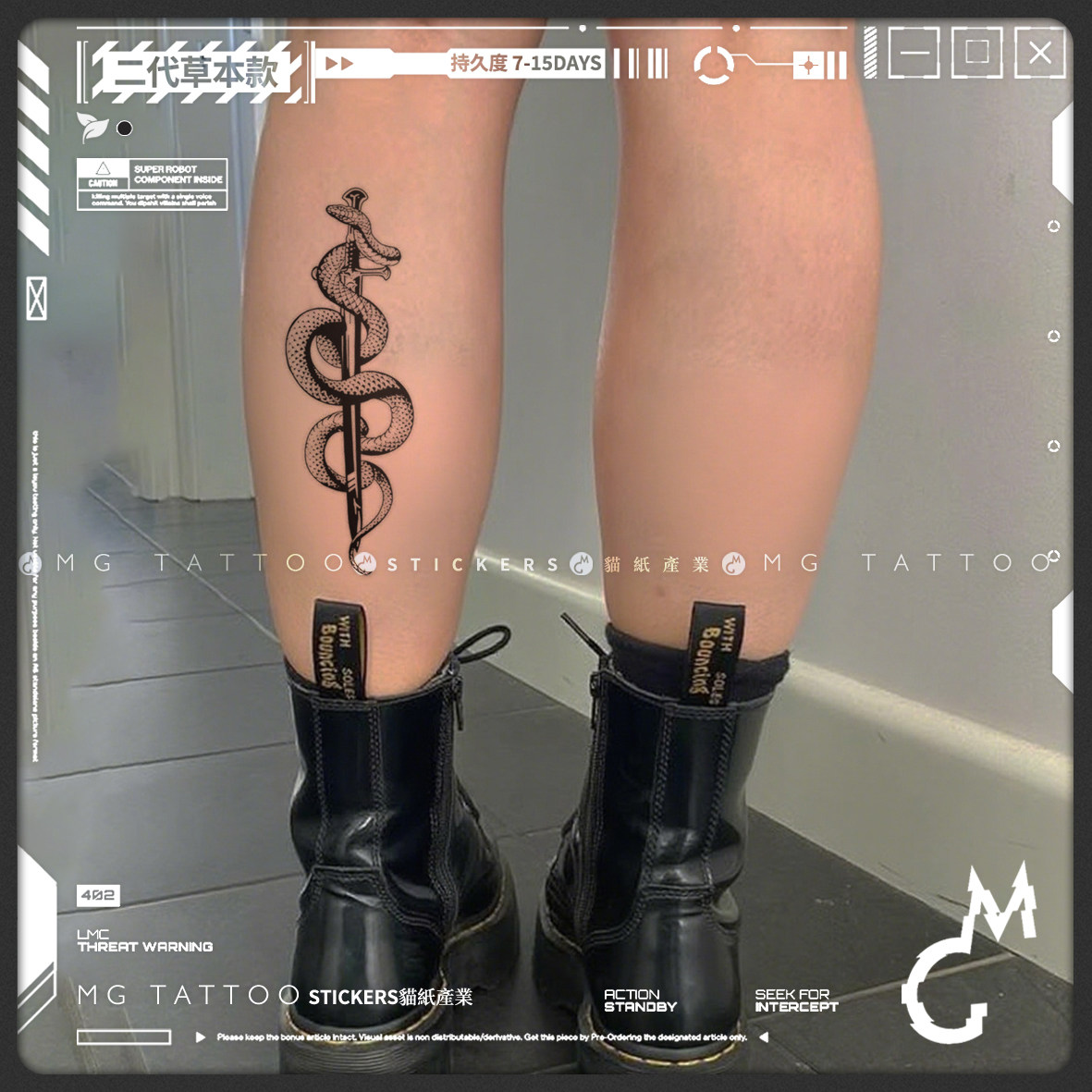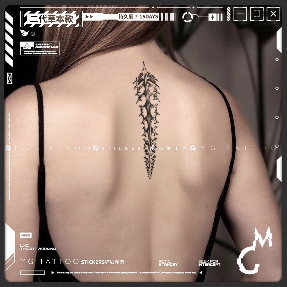 美式 达摩克利斯之剑 二代草本 手臂草本持久纹身贴纸男 tattoo