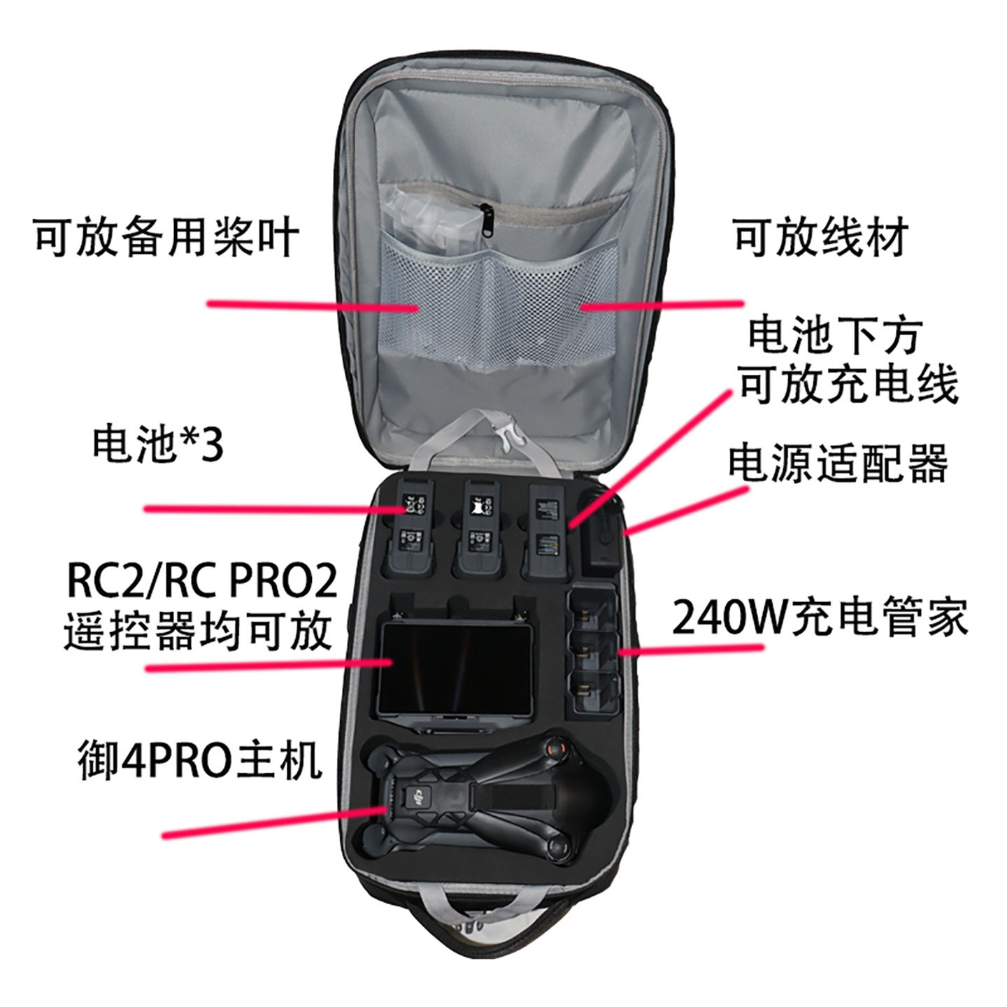 适用大疆御4pro收纳包dji 防水双肩背包 mavic4创作无人机带屏套装