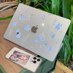 M3保护套配件 汪三岁原创「猫猫雨」镭射MacBook保护壳苹果笔记本2025款 M4pro14寸16寸air13寸M1