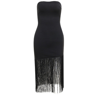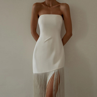 sexy tassel strapless slit 流苏抹胸开叉连衣裙 Women dress