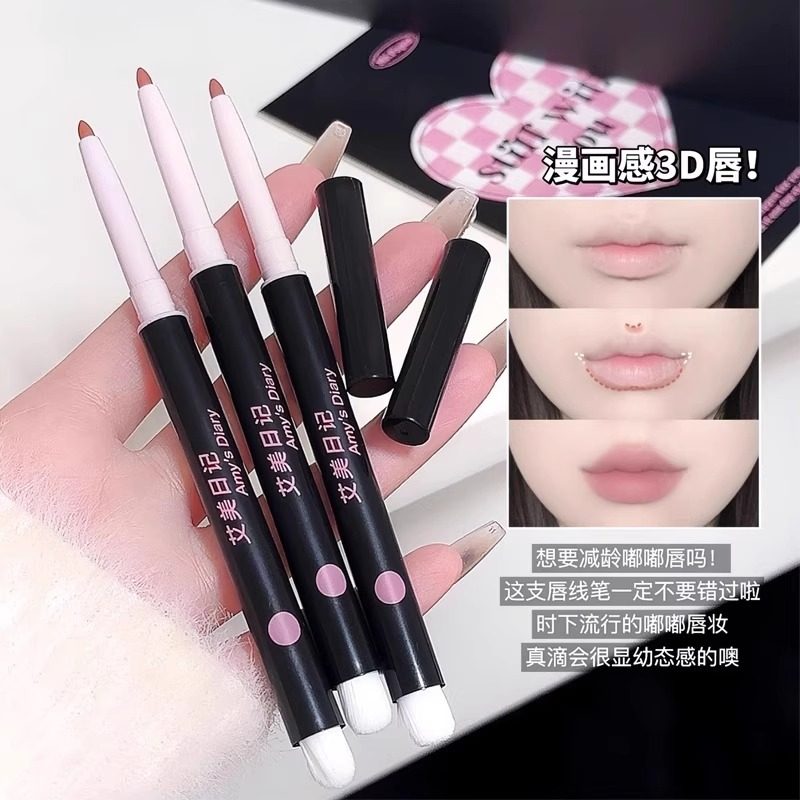 双头唇线笔唇刷二合一防水持久不粘杯自然勾勒唇形裸色口红笔唇膏
