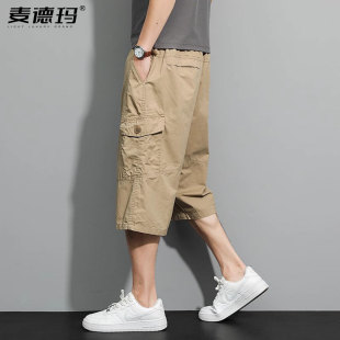 短裤 薄款 休闲裤 男夏季 宽松男款 男士 中老年大码 七分裤 加肥加大工装