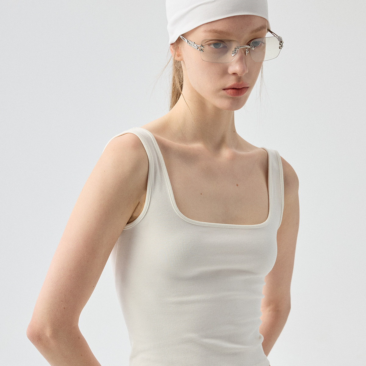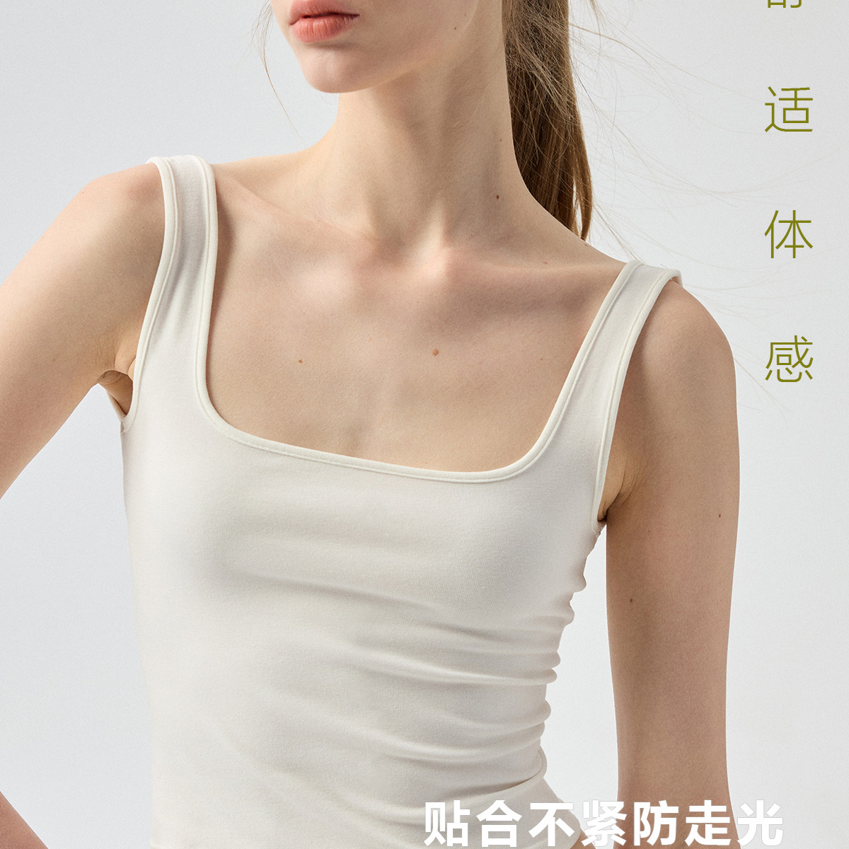 修身 郑佰万 外穿内搭吊带女无袖 背心夏季 低领上衣 纯色大方领短款