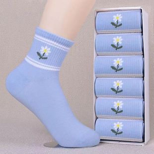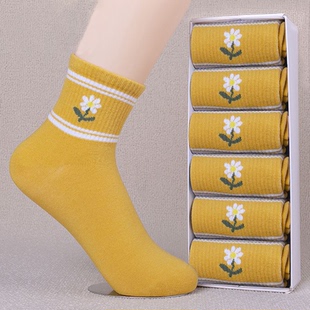 5双袜子男女纯棉防臭中筒袜情侣刺绣学生百搭ins高帮运动长筒袜潮