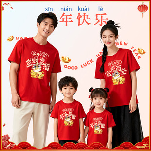 2026新年高端亲子装 本命年衣服 马年t恤拜年服一家四口全家福短袖