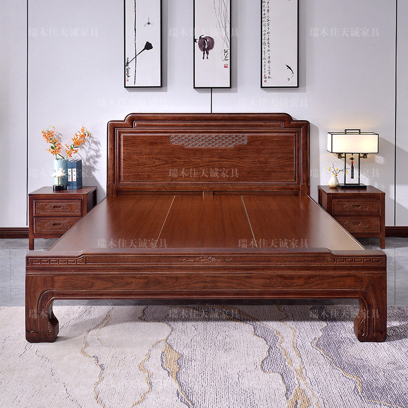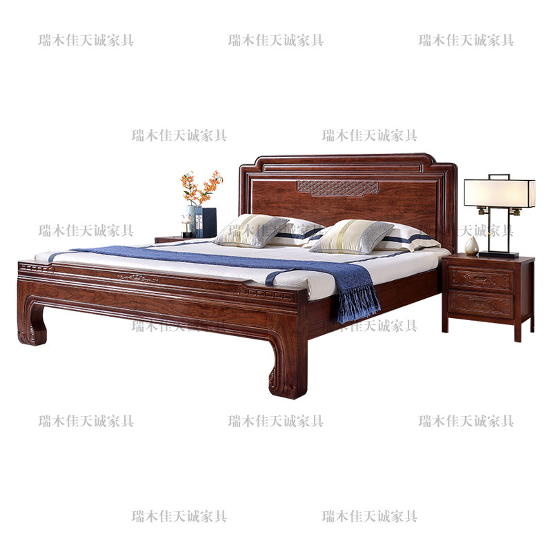 新中式 实木床榫卯床1.8米大床1.5M双人床经济型简约现代家具储物
